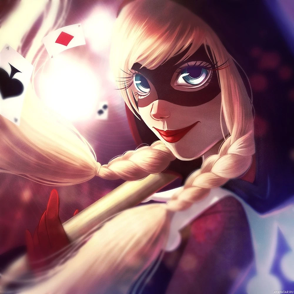 a female character who resembles the comic book villain Harley Quinn. She is depicted with