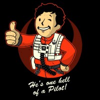 Wars character with the Fallout references suggests a humorous mashup or comparison between the two fictional universes.