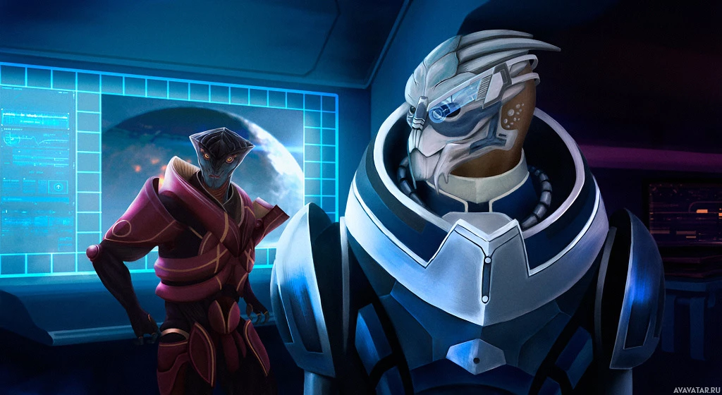 the video game series "Mass Effect." On the left is a character known as