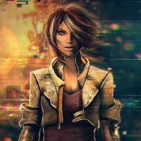 a city skyline that could be reminiscent of a European city, possibly Paris, given the silhouette of the Eiffel Tower. The background has a digital or cybernetic feel to it with circuit-like patterns and a warm