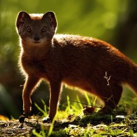 red color, and it seems alert and focused on something off-camera. It's not common for foxes to stand upright like this, so it may have spotted something that caught its attention or could simply be posing for the photo.