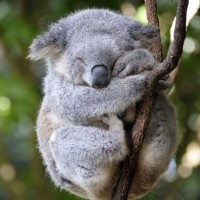 The image shows a koala bear sleeping on