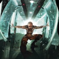 advanced technology typical of science fiction settings. The character is equipped with armor that has a sleek, high-tech look, with intricate detailing that suggests a storyline rich in