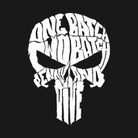 The image shows a stylized skull with the words "One batch one two three" arranged on its surface. The text is presented in an irregular, seemingly handwritten font, which gives it a distressed appearance reminiscent of graffiti or punk rock style.