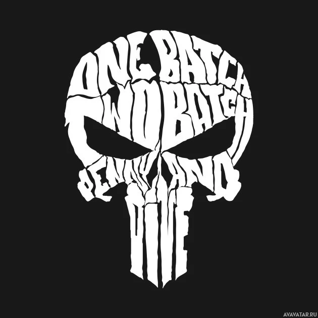 На картинке изображен стилизованный череп со словами «Одна партия одна две три», расположенными на его поверхности. Текст представлен нерегулярным, казалось бы, рукописным шрифтом, что придает ему тревожный вид, напоминающий граффити или панк-рок стиль.