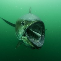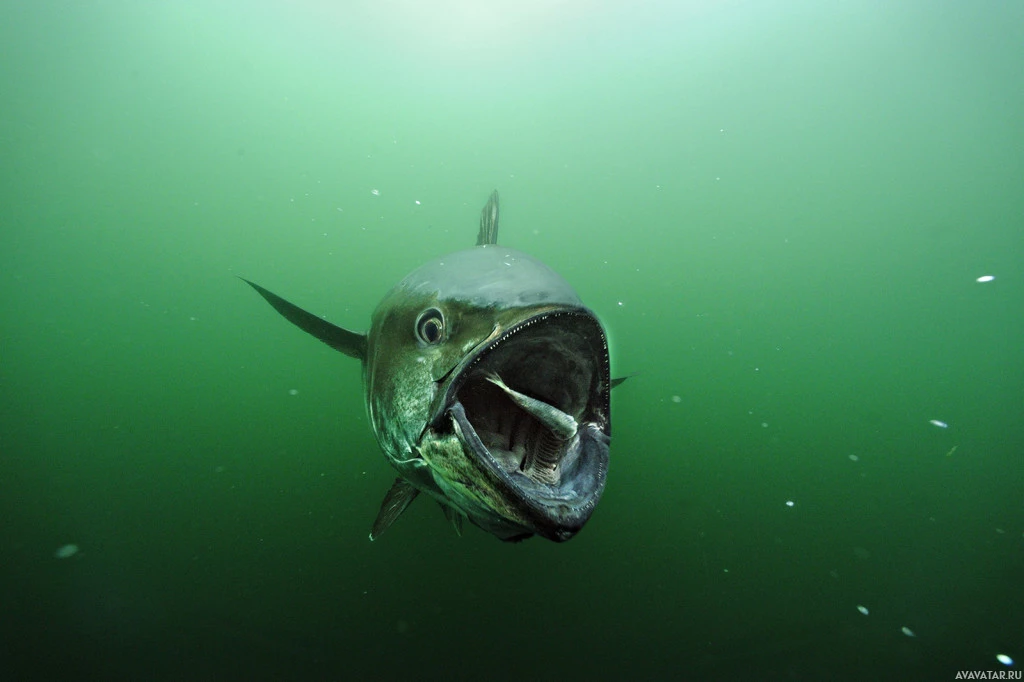 На снимке изображен синий марлин, который является одним из видов рыб. У него большая голова с острыми зубами и заостренной мордой, характерные черты ее вида. Марлин находится в подводной среде, возможно, плавает или питается.