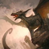 a fantasy genre where such creatures exist. The artwork is rich in detail, particularly focusing on the dragon's