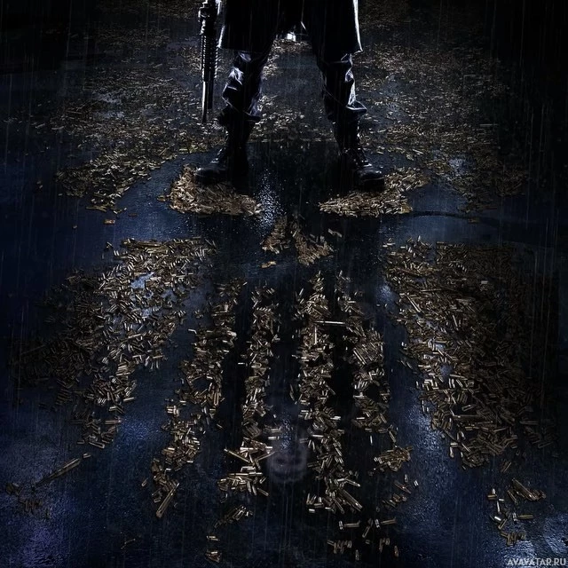 The image features a character wearing what appears to be an armored tactical suit, commonly associated with the Punisher persona from
