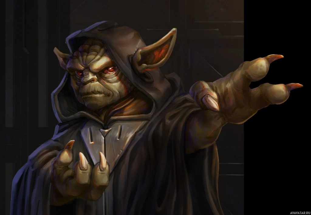 the Star Wars franchise, known as Yoda. He is depicted with his arms outstretched, and his face shows a stern or focused expression. The artwork is likely fan-made or official