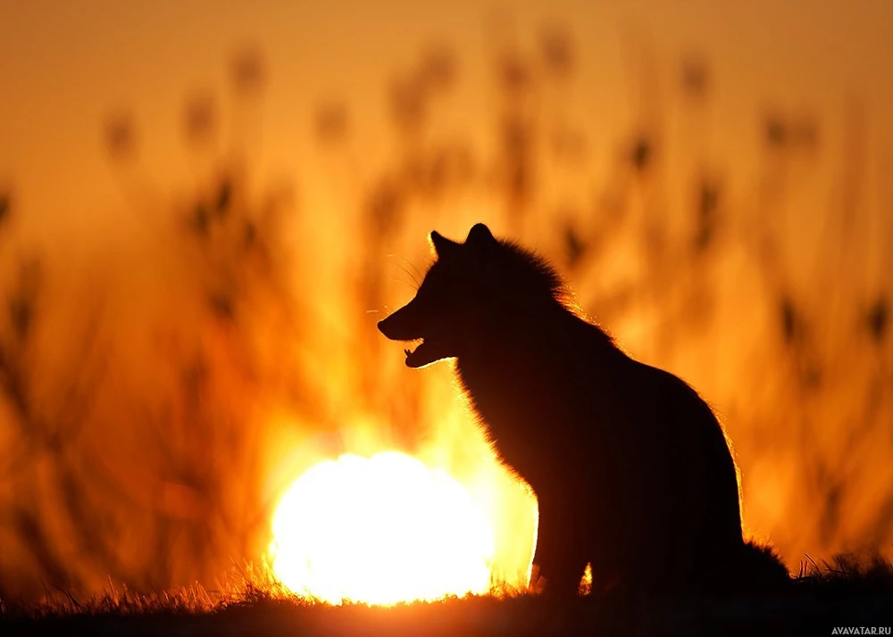 лисы | Скачать аватары с лисой | Foxes | Силуэт лисы на лугах