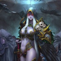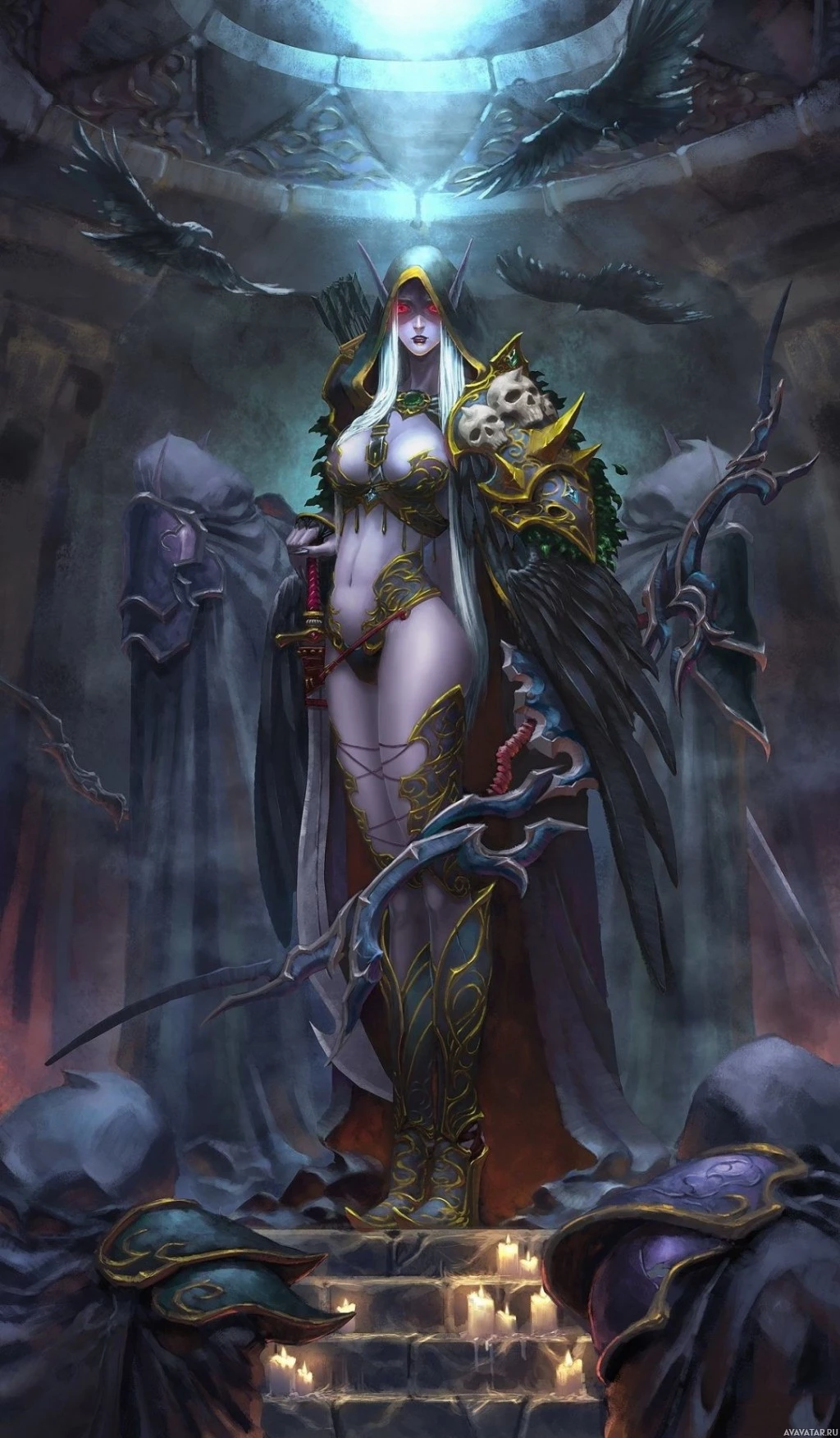 dark skin and elongated features. They are often portrayed as skilled in magic and cunning warriors. The character in the image is dressed in
