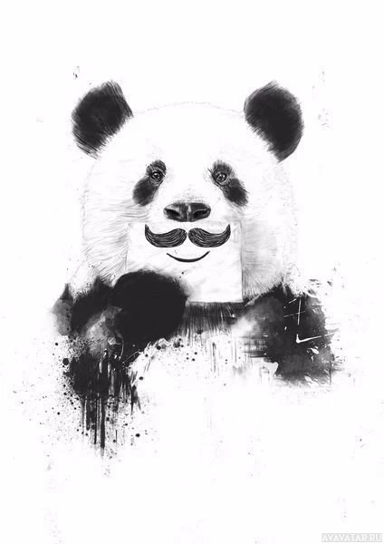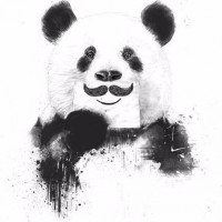 The image features an illustration of a panda. The panda has its face covered with a black and white pattern, resembling a bandana or mask with