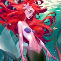 The image depicts an illustration of a mermaid character from the Disney