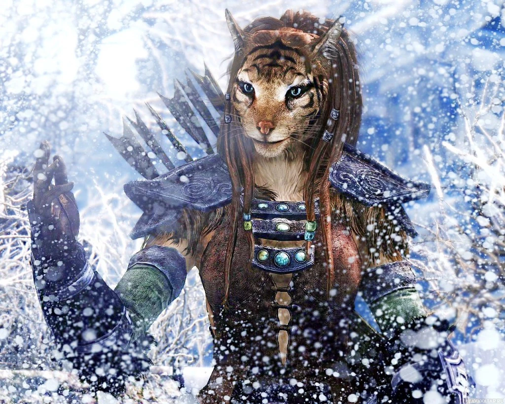 the video game "The Elder Scrolls V: Skyrim." This is a khajiit, which is a cat-like