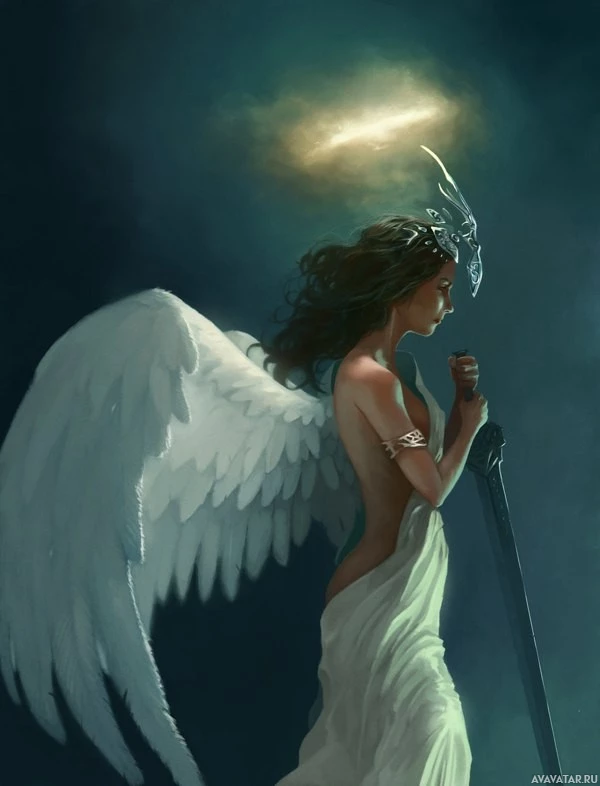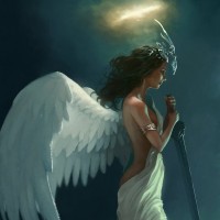 The image depicts an artistic illustration of a fantasy-themed character. It appears to be an angel or
