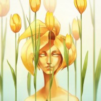yellow flowers. The character has