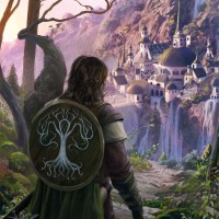 the Elven realms such as Rivendell or Eregion. The overall atmosphere is serene and majestic, fitting for a journey through Tolkien's
