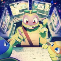 The image features a colorful and cartoon-like illustration of the Teenage Mutant