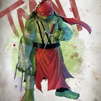 The image depicts an illustrated character that is a well-known figure from the Teenage Mutant