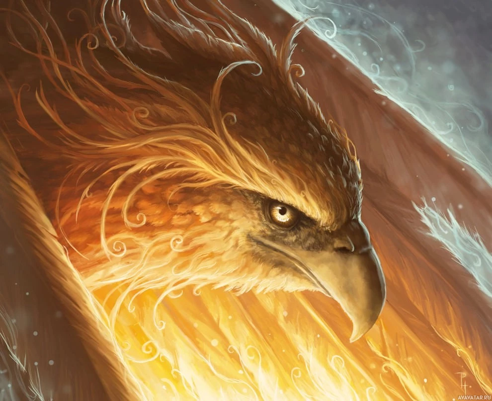 a real scene. The eagle is detailed and expressive, with its feathers appearing fiery and dynamic, which adds a fantastical element to the image.