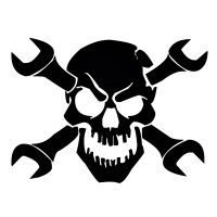 a pirate hat with crossed swords behind it. This is a common representation of danger or piracy, often associated with