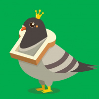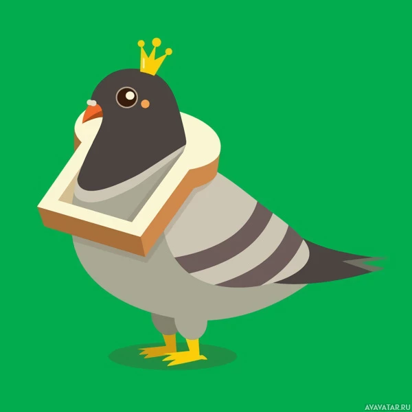 a small crown on its head, suggesting it's being portrayed as royalty or of some significance within the image's context. The pigeon is also wearing what appears to be