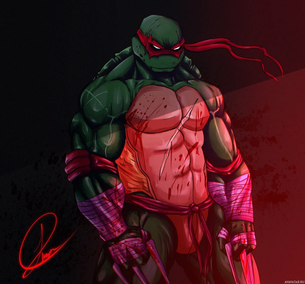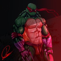 Mutant Ninja Turtle named Raphael. He is shown with