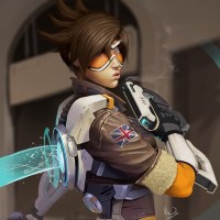 the video game "Overwatch." This is Tracer, known for her ability to manipulate time and her iconic