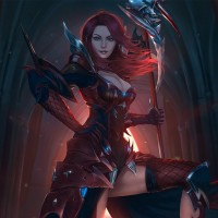 red hair. She is dressed in armor and wielding what appears to be a staff or wand, suggesting that she might have some magical or combat abilities in the context of her character. The setting looks like a dimly lit environment, possibly indicating a scene from