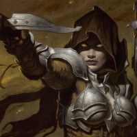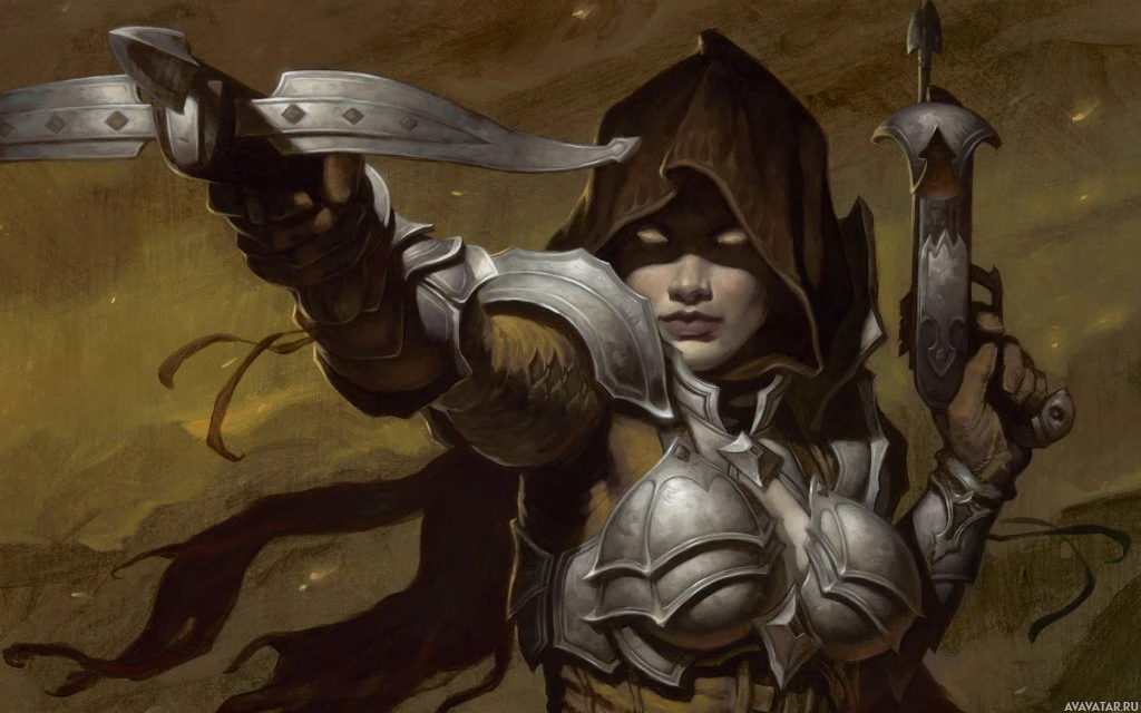 The image depicts an illustration of a character from the "Diablo" series. This character is known as