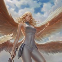 This image depicts a fantasy-style character that appears to be an angel. The figure has long