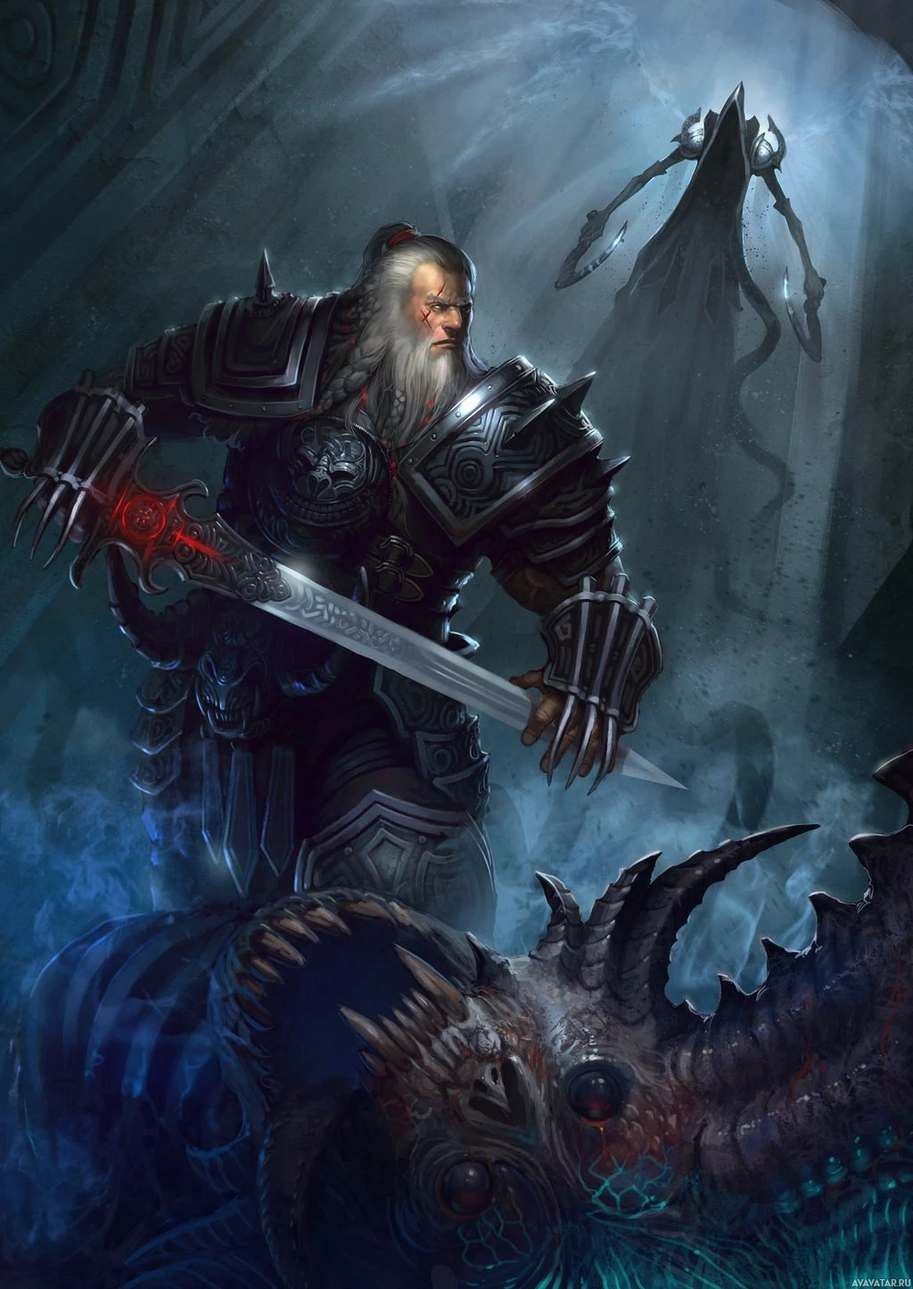 The image shows a fantasy-style depiction of a character from the "Diablo"