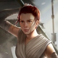 the Star Wars franchise. She is depicted wearing her iconic attire, which includes a brown jacket, pants with