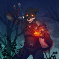 Wild Hunt," a popular open-world action role-playing game. The character is depicted with anthropomorphic features, resembling a wolf, and is wearing armor with