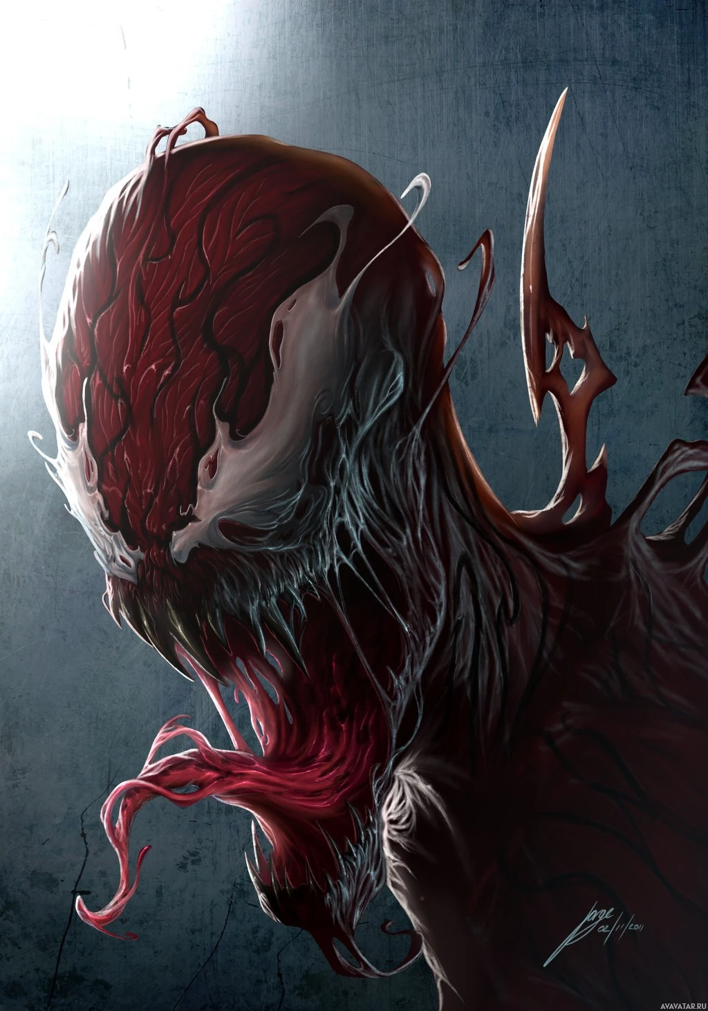 This is an image of a character known as Carnage, which appears to be a villain from the Spider-
