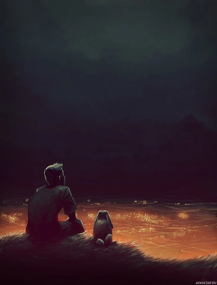 light source that could be stars or distant lights. There are no silhouettes in this image, as the scene appears to be fully visible.