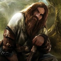 a fantasy character, depicted as a bearded dwarf. The dwarf appears to be wearing armor and has a sword at his side, suggesting he might be a warrior or guardian in this