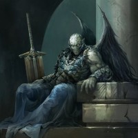 The image depicts a fantasy-themed illustration of a character who appears to be a demonic or