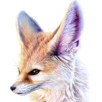 a real animal. The fox is depicted in profile, facing slightly towards the viewer. Its fur has a mix of brown and orange hues, which are