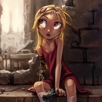 feel of the scene. The girl is looking down at the zombie with an expression that could suggest concern or sadness. There are no visible pistols or children in this image.