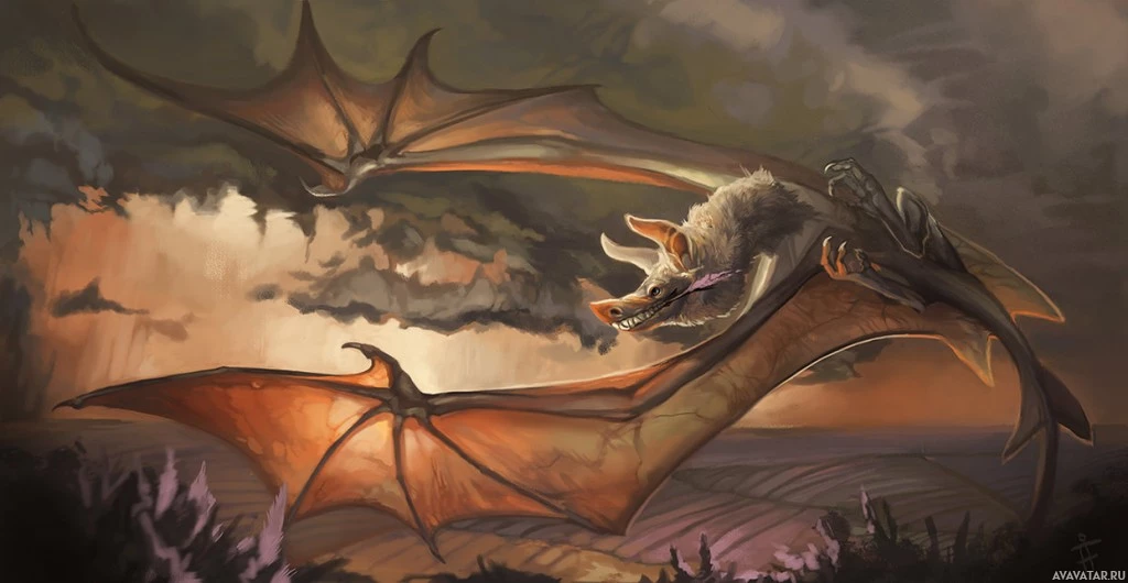 magical abilities, such as levitating objects with their wings. The bats are set against