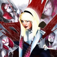 Gwen Stacy, a fictional superheroine from the Marvel Comics universe. She is portrayed in her Spider-Woman persona with