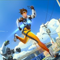 the video game Overwatch, known as Tracer. She is depicted in