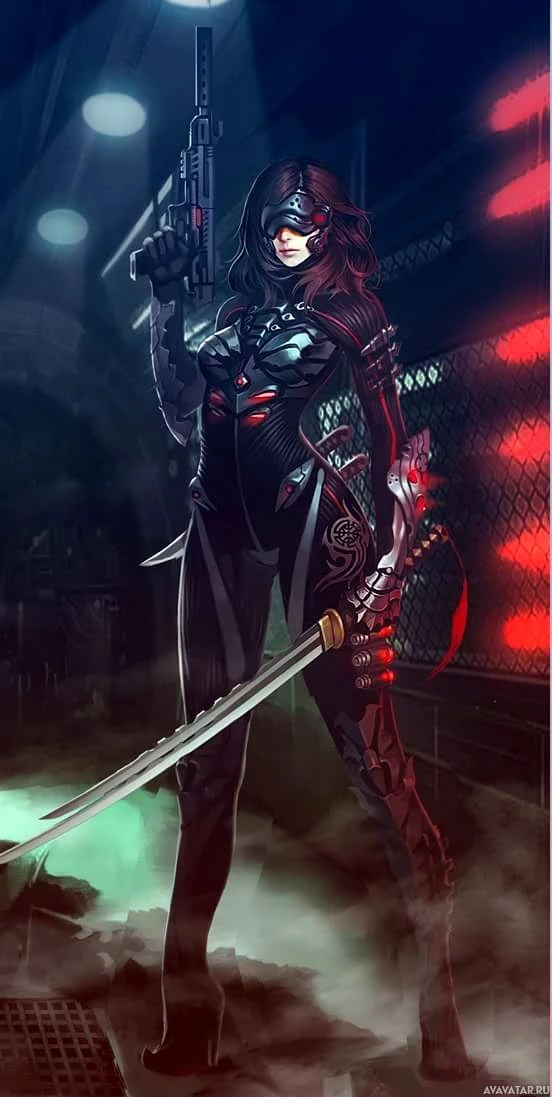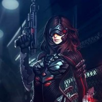 combat gear, with elements that suggest futuristic or cyberpunk aesthetics. There are also
