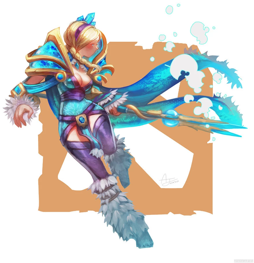 Crystal Maiden. She is dressed in armor with a predominantly blue and white color scheme, featuring