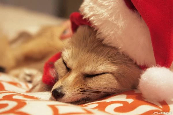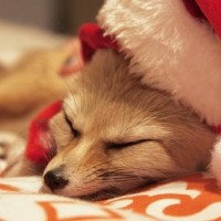 the holiday season. The fox is the central focus of the image, and its expression is calm and relaxed.