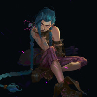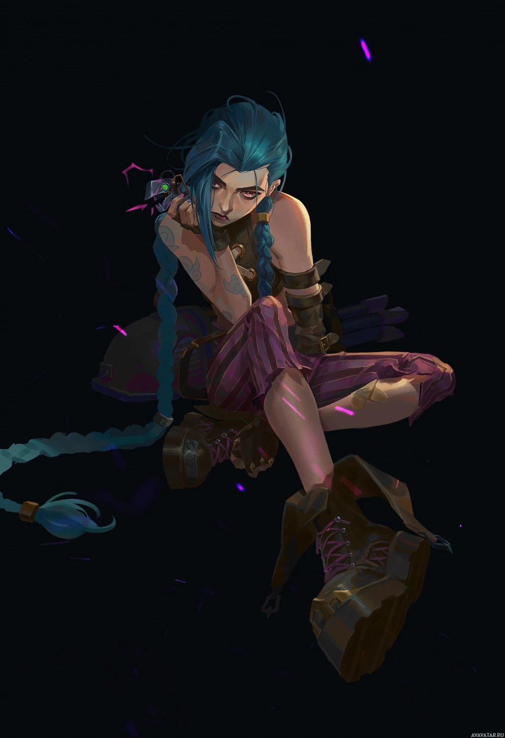 an animated character known as Jinx from the game "League of Legends." She is a playable champion in the MOBA (Multiplayer Online