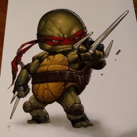 The image shows an illustration of Raphael, one of the Teenage Mutant