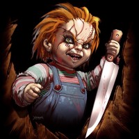 На картинке изображена иллюстрация персонажа Пеннивайза из фильма «Оно». Он держит нож с кровью на нем и, кажется, выходит из-под земли, что согласуется с его способностью появляться в разных формах на протяжении всей истории. Его выражение — злой умысел, типичный для угрожающего присутствия персонажа.