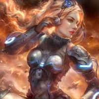 the video game Starcraft, specifically Nova Terra. This character is known for her armor and hairstyle that resemble that of